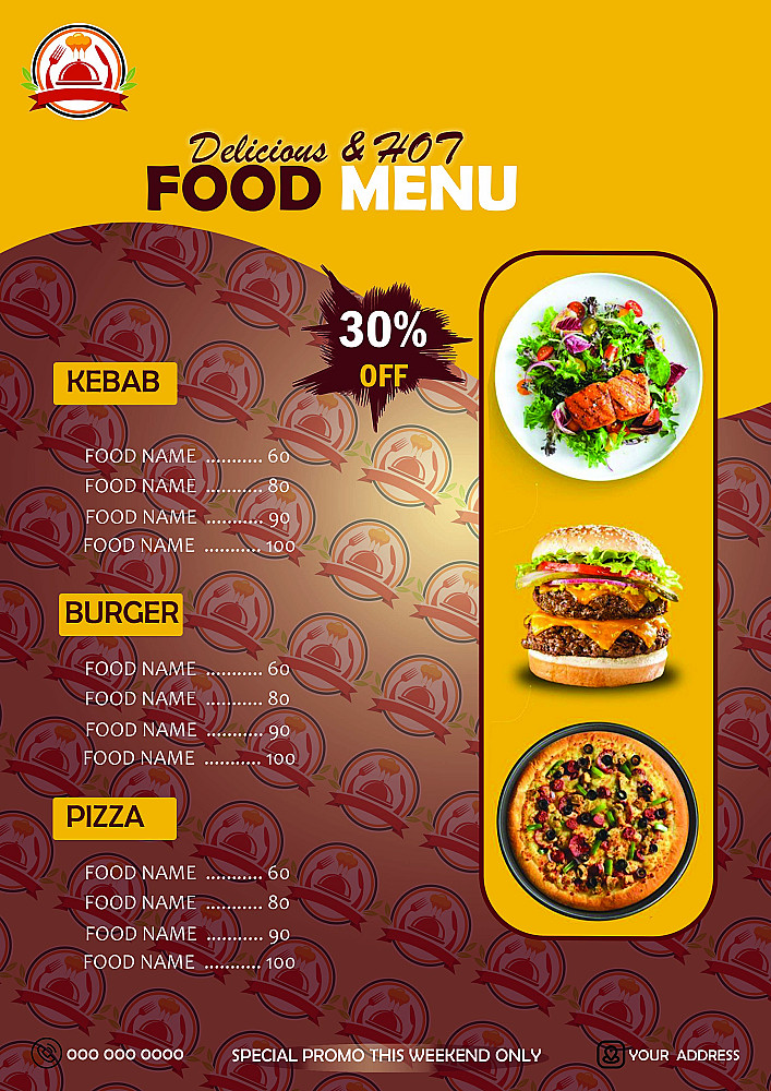 سأقدم لكم تصميم منيو مطعم أو كافيه احترافي ، ويشمل العرض: