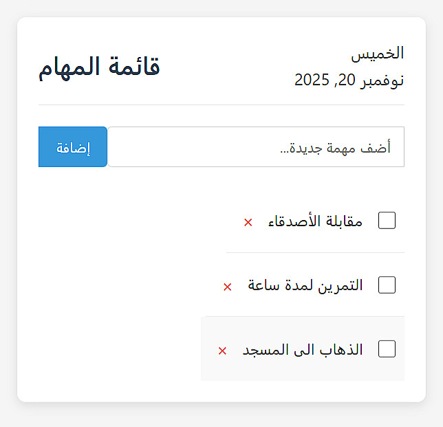 حفظ المهام بالاعتماد على Local Storage.