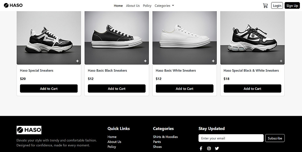 أقوم بتصميم وبرمجة واجهة متجر إلكتروني احترافية لعرض منتجات براند الملابس (أحذية – تيشيرتات – إكسسوارات) بشكل جذاب ومتناسق، مع مراعاة الهوية البصرية للبراند.
