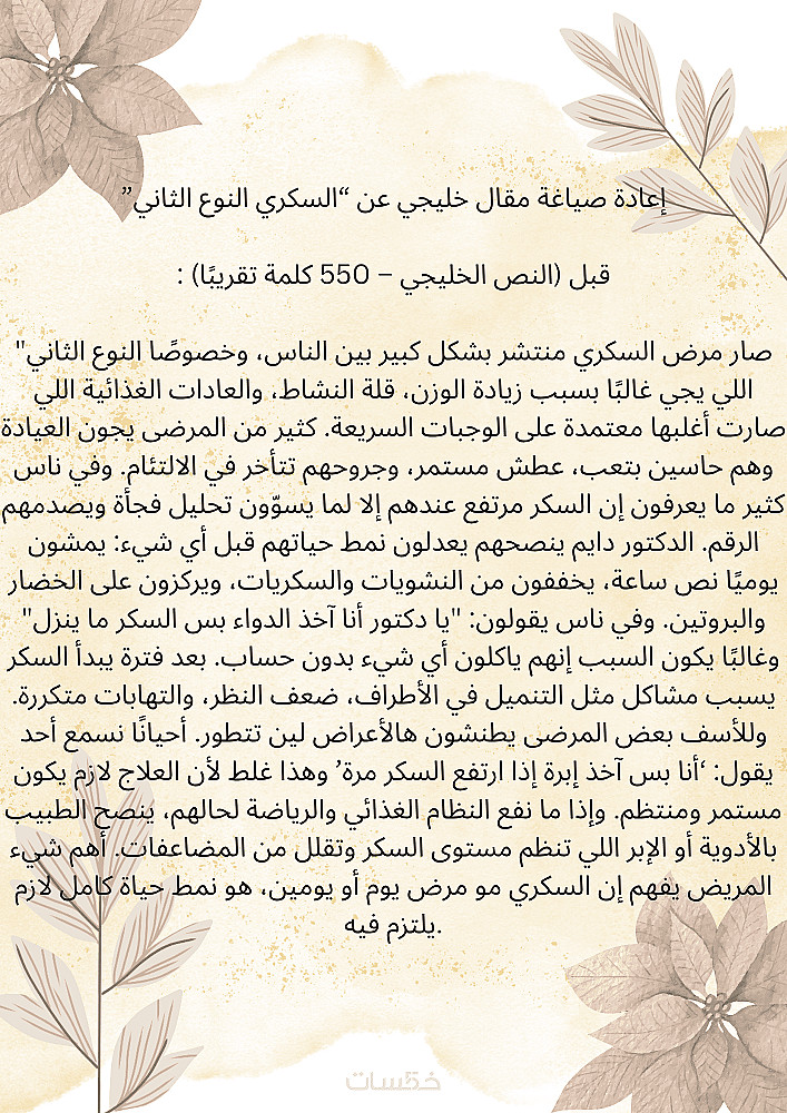 إعادة صياغة النصوص الطبية من اللهجة الخليجية إلى العربية الفصحى باحترافية