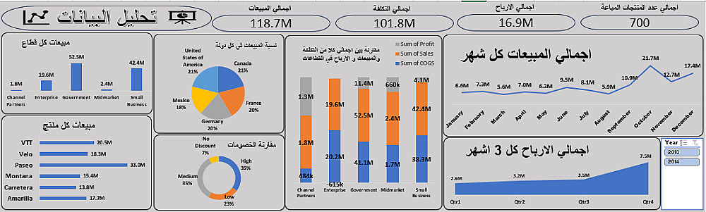 هل تبحث عن الأداة المثالية لإنهاء السنة المالية بثقة؟ يوفر لك هذا القالب المصمم باحترافية لوحة تحكم تفاعلية وشاملة لتحليل الأداء المالي والمبيعات الرئيسية، مما يجعله الأداة المثالية للمدير المالي ومدير الحسابات لاتخاذ قرارات الإقفال والتخطيط للعام الجديد.