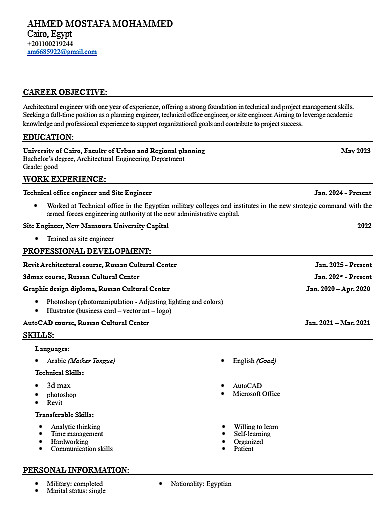* سيتم تصميم السيرة الذاتية بأسلوب واضح ومنظم
