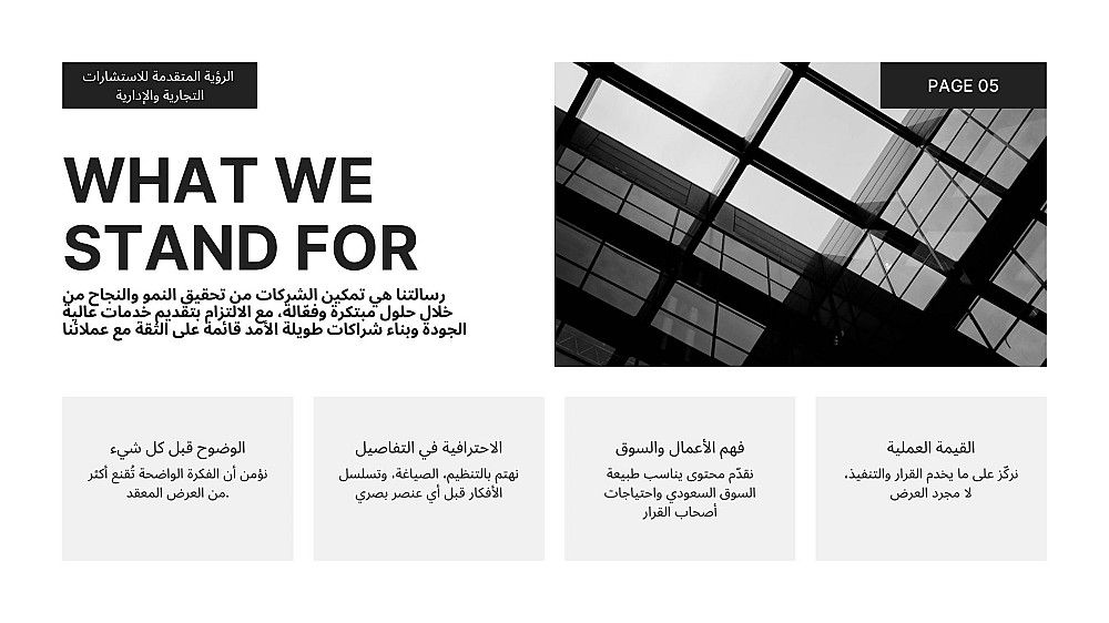 الخدمة مناسبة للشركات، الاستشاريين، رواد الأعمال، والعروض الموجهة للإدارة أو المستثمرين.
