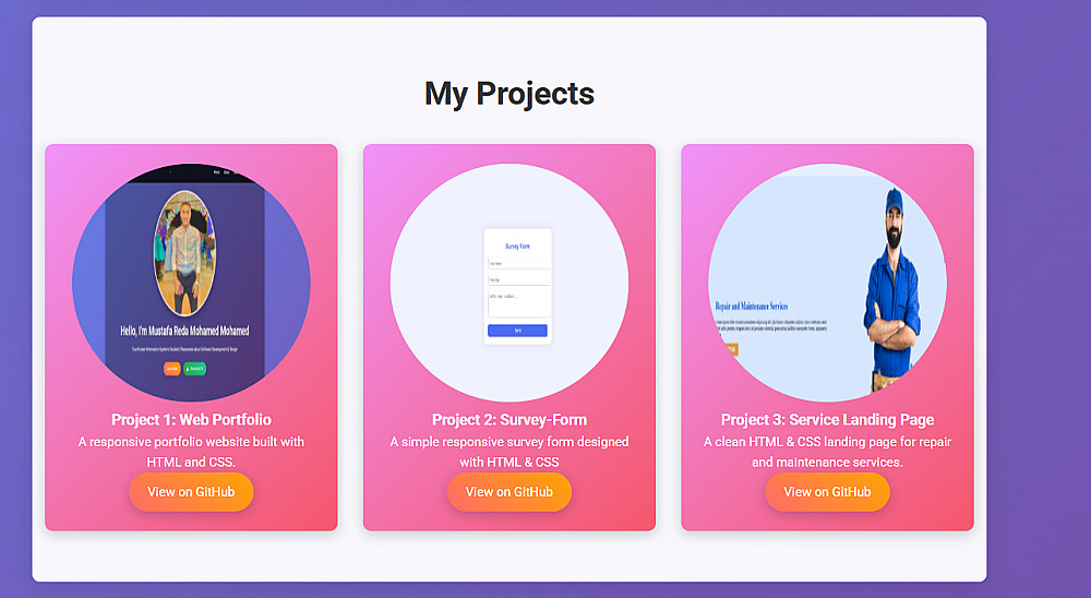 قسم Projects لعرض أعمالك مع روابط GitHub