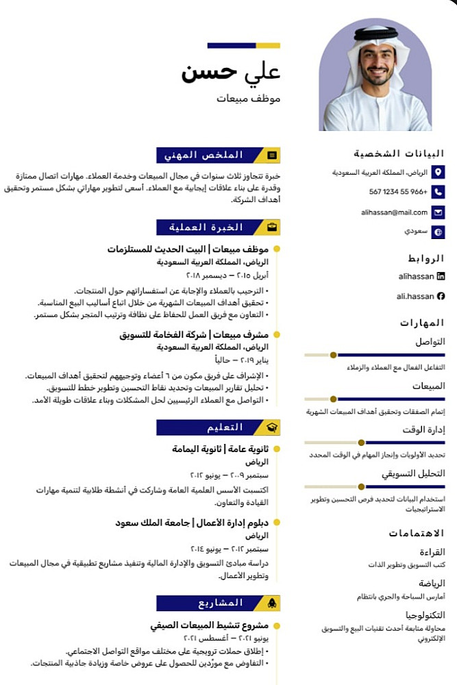 تصميم سيرة ذاتية لتقديمه في مجالات عديدة للعمل بها