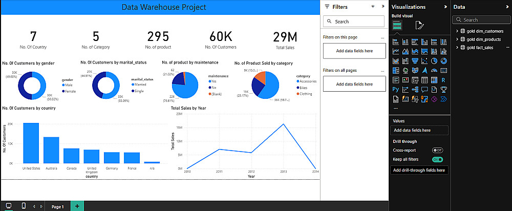إنشاء لوحة Power BI تحتوي على 3 مخططات: Bar Chart، Pie Chart و Line Chart، لعرض بياناتك بوضوح. السعر يشمل هذه اللوحة فقط، وأي إضافة تتطلب خدمة إضافية.