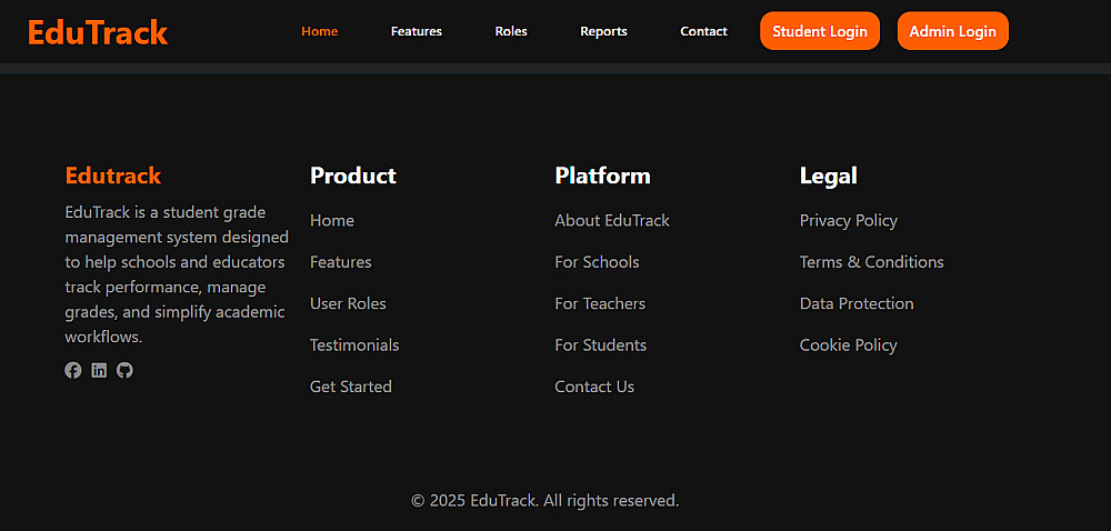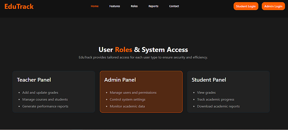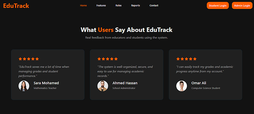 تصميم واجهة EduTrack لطلاب ومدرسين وإدارة المدارس