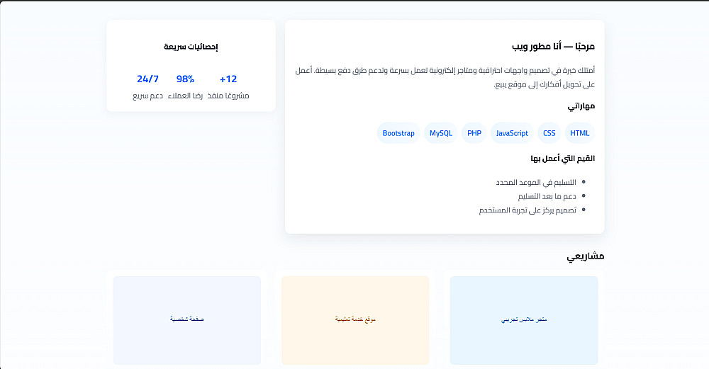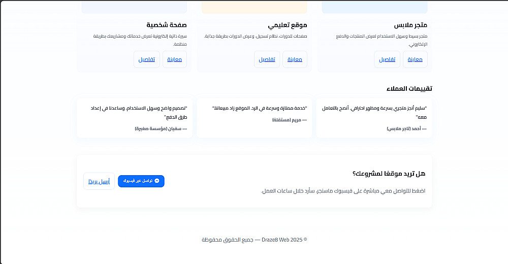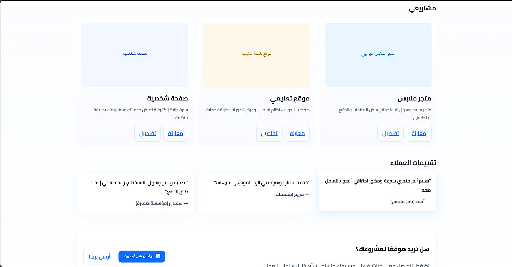 الهدف من الصفحة هو تقديم مشروعك بشكل احترافي وزيادة فرص تواصُل العملاء معك.
