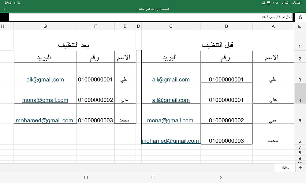 إدخال وتنظيم البيانات بدقة في Excel أو Google Sheets، تنظيف، ترتيب، وتصحيح الأخطاء، وإنشاء جداول ورسوم بيانية عند الحاجة