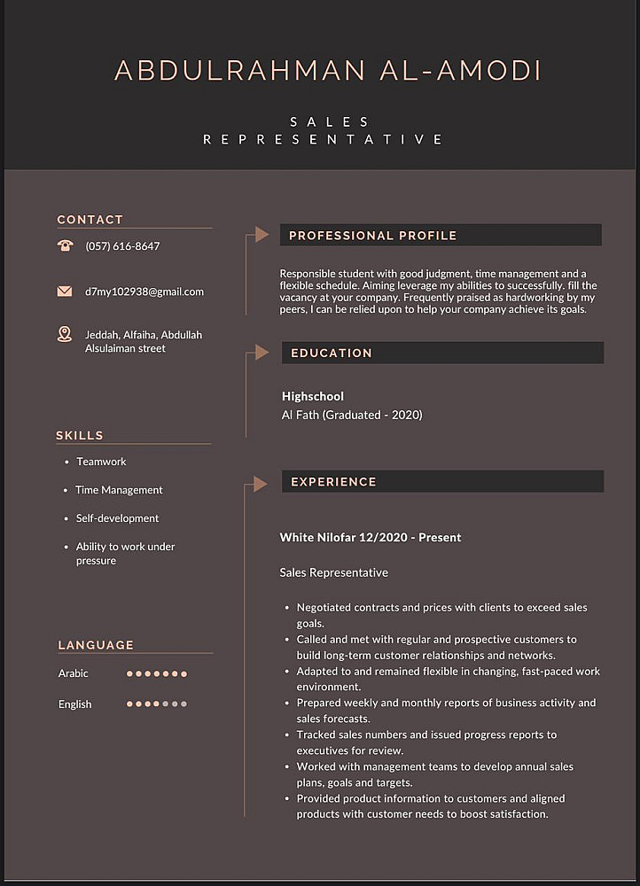 سيرة ذاتية منظمة بعناية توضح الخبرات العملية، المؤهلات التعليمية، والمهارات الشخصية بطريقة جذابة واحترافية، لتسهيل وصول صاحب العمل إلى أهم المعلومات بسرعة وكفاءة.