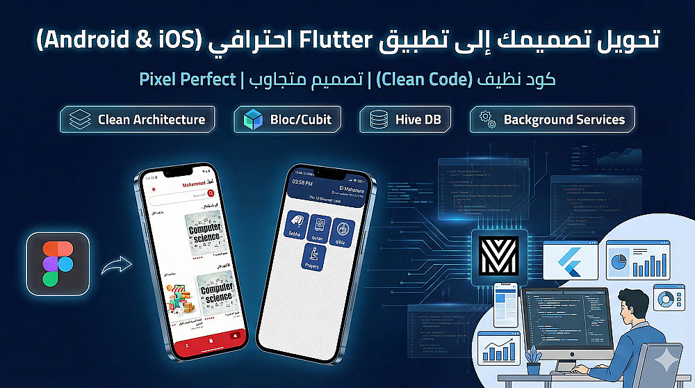 تحويل تصميم UI/UX إلى كود Flutter احترافي (Android & iOS)