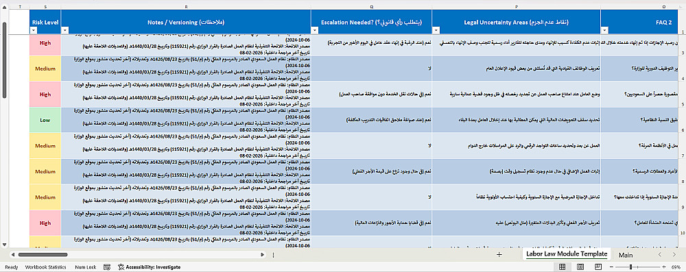 خبير في تحليل الأنظمة والقوانين وقمت مؤخرا بأتمتة أكثر من 25 بابا من نظام العمل السعودي في أداة ذكية للامتثال مما يضمن لك استناد دعواك إلى نصوص محدثة ودقيقة أمتلك مهارة تحليل البيانات والربط بين الوقائع والمواد القانونية بوضوح تام لضمان إيصال حجتك للقاضي بشكل مباشر ومقنع