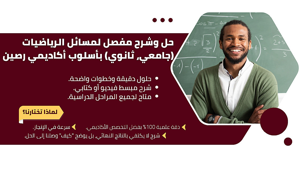 حل وشرح مفصل لمسائل الرياضيات "جامعي، ثانوي" بأسلوب أكاديمي رصين