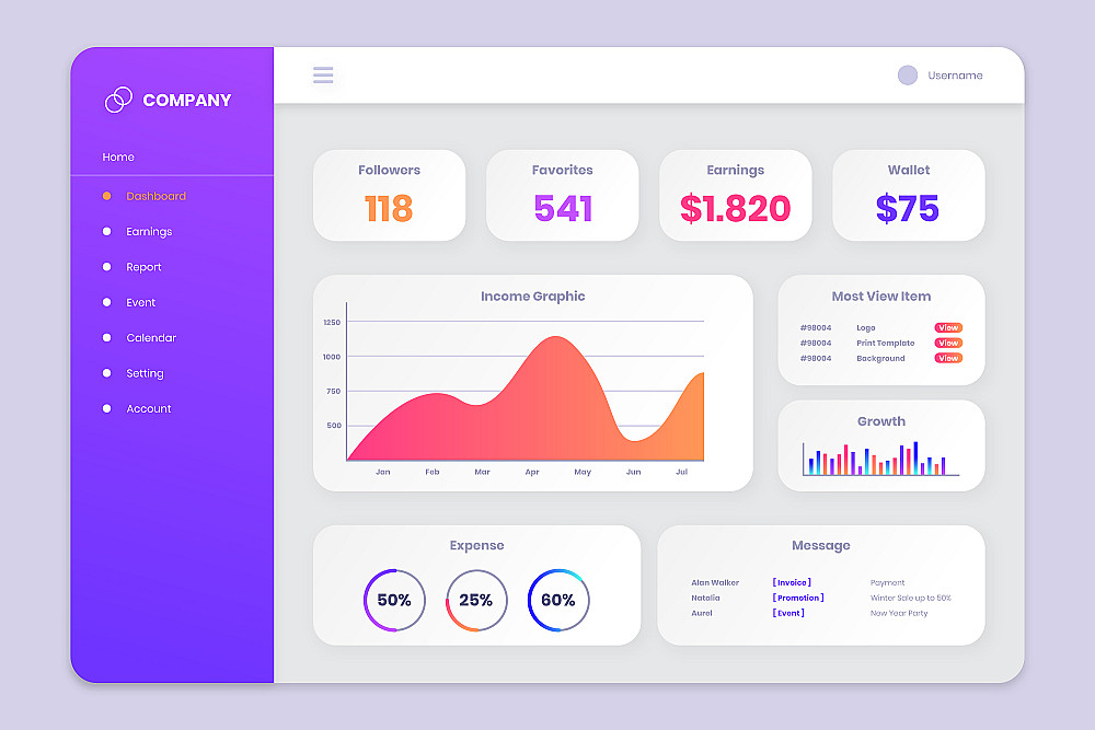 يمكن تخصيص لوحة التحكم حسب طبيعة مشروعك (منتجات – مستخدمين – طلبات – مهام…).