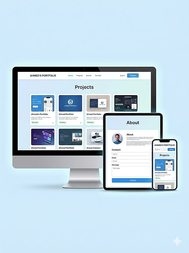 أقوم بتصميم موقع Portfolio احترافي يساعدك في عرض أعمالك وخبراتك بطريقة منظمة وجذابة، مناسب للمبرمجين والمصممين وصناع المحتوى.