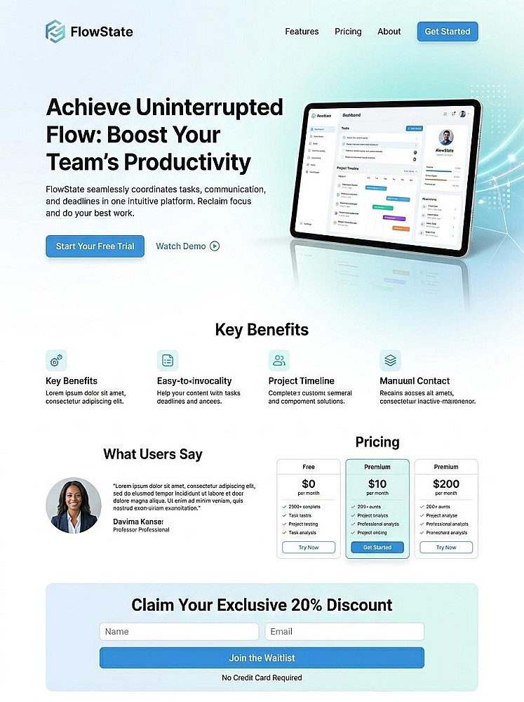 تصميم صفحة هبوط احترافية مناسبة للتسويق لمنتج أو خدمة، مع تركيز على جذب الانتباه وتحفيز الزائر لاتخاذ إجراء.