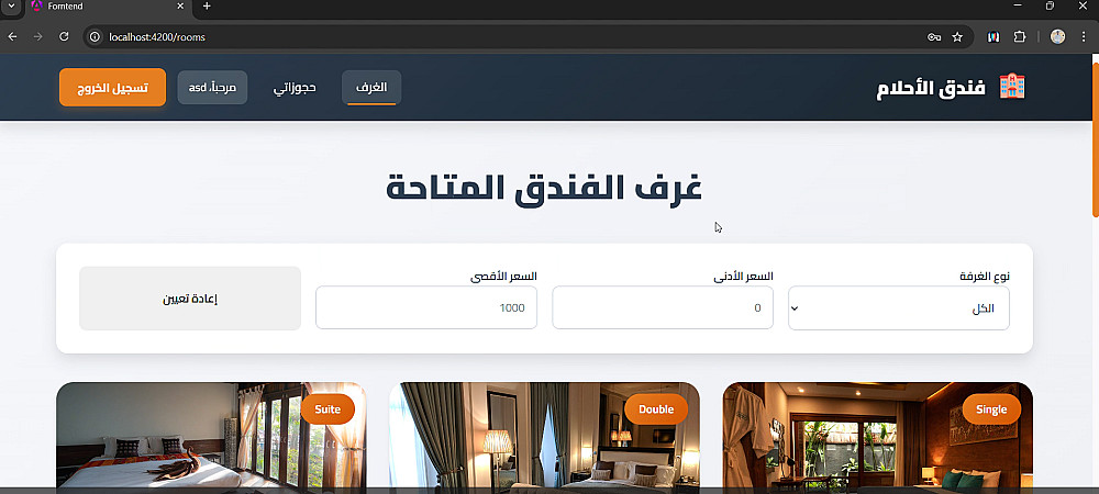 - عرض الغرف المتاحة مع الصور والأسعار