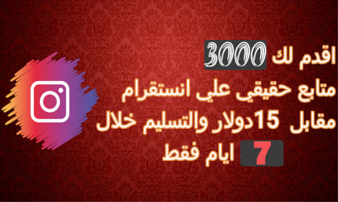 اقدم لك 3000 متابع حقيقي اللي حسابك علي انستغرام بدون نقص في المتابعين مقابل 15 دولار والتسليم يكون خلال 7 ايام