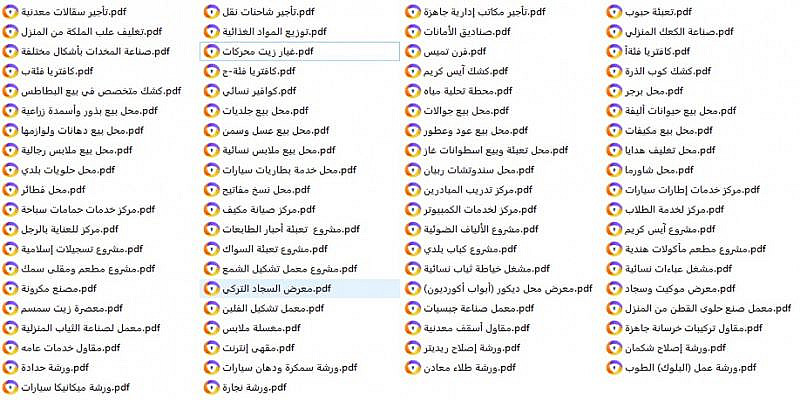 من اشهر الدراسات الموجودة: تأجير مكاتب إدارية جاهزة . محل بيع ملابس رجالية و نسائية . محل حلويات بلدي . مركز لخدمات الكمبيوتر . مصنع مكرونة . مغسلة ملابس . مقهى إنترنت .معرض موكيت وسجاد .محل فطائر . محل نسخ مفاتيح . محل بيع عسل وسمن . محطة تحلية مياه . تأجير سقالات معدنية . كافتريا باكثر من فئة