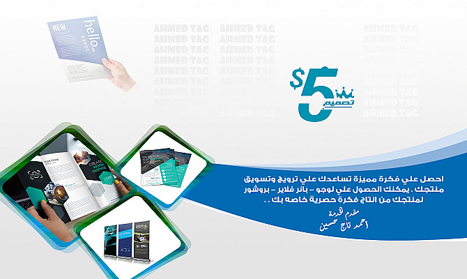 سوف تحصل علي تصميم بفكرة رائعه تساعدك في الترويج لخدمتك او مؤسستك او منتجاتك في بروشور او فلاير او بانر او لوجو
