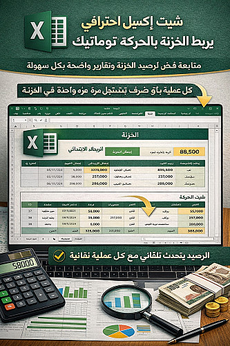 شيت إكسيل احترافي يربط لك الخزنة بالحركة أوتوماتيك