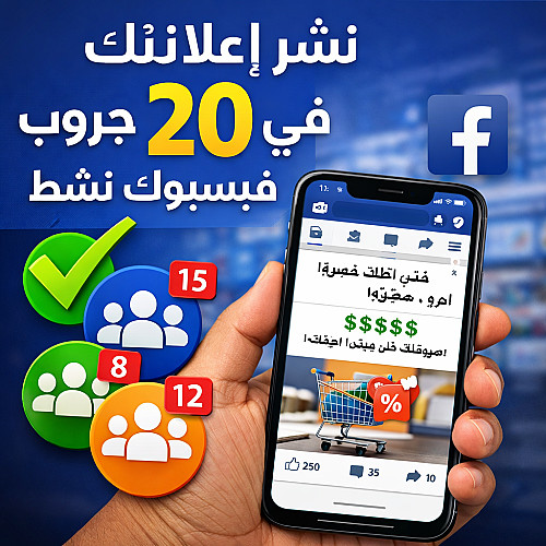 أقوم بنشر إعلانك في 20 جروب فيسبوك نشط
