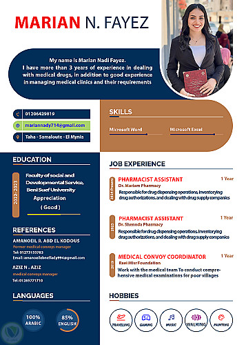 مدير فريق مالى - مدخل بيانات - مساعد صيدلى - مدير قوافل علاجيه