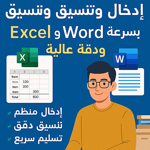 أنا متخصص في إدخال البيانات وتنسيقها باحتراف باستخدام Excel وWord، بخبرة قوية في ترتيب وتنظيم البيانات بدقة وسرعة. أمتلك مهارة عالية في تصميم الاستبيانا ....